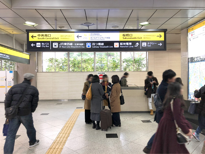 JR大阪駅桜橋口の改札を出て、右手(西)にまっすぐ進みます。