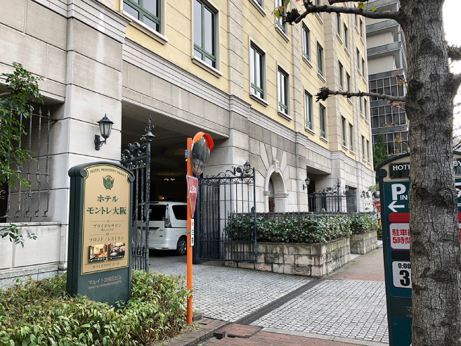ホテルモントレ大阪の駐車場スペースに入っていきます。