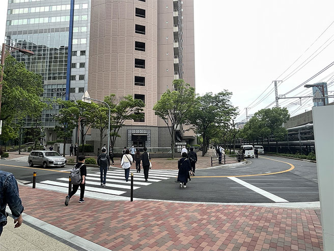 通路をぬけて横断歩道を渡ります。